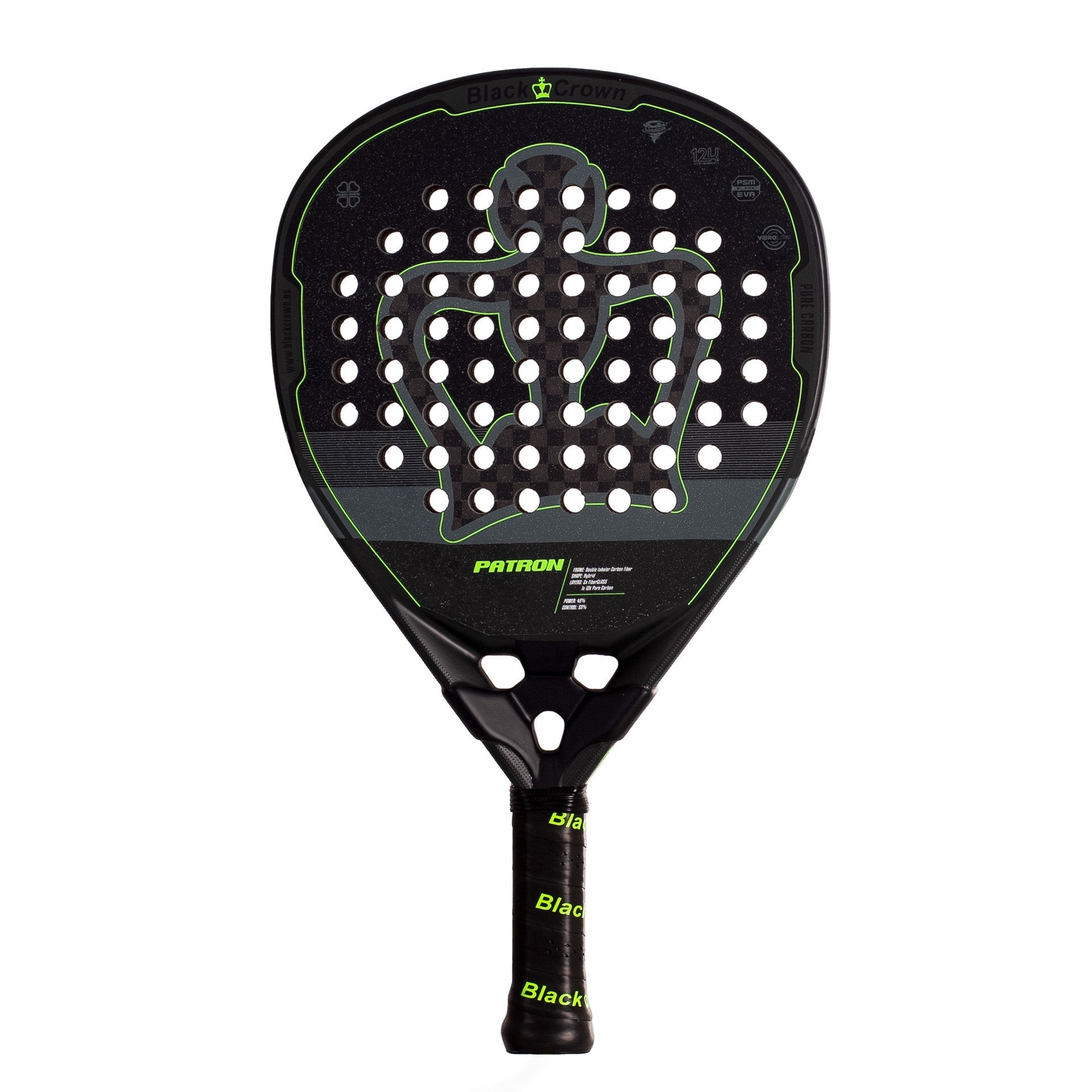 The BlackCrown Patron 24 features an advanced carbon fiber surface, delivering outstanding durability and stability for aggressive play. Its core technology is designed to provide the ideal mix of power and control, while the textured surface enhances spin, allowing you to manipulate the ball with precision. Whether you need a hard smash or a delicate drop shot, the Patron 24 offers optimal ball feel and excellent responsiveness.